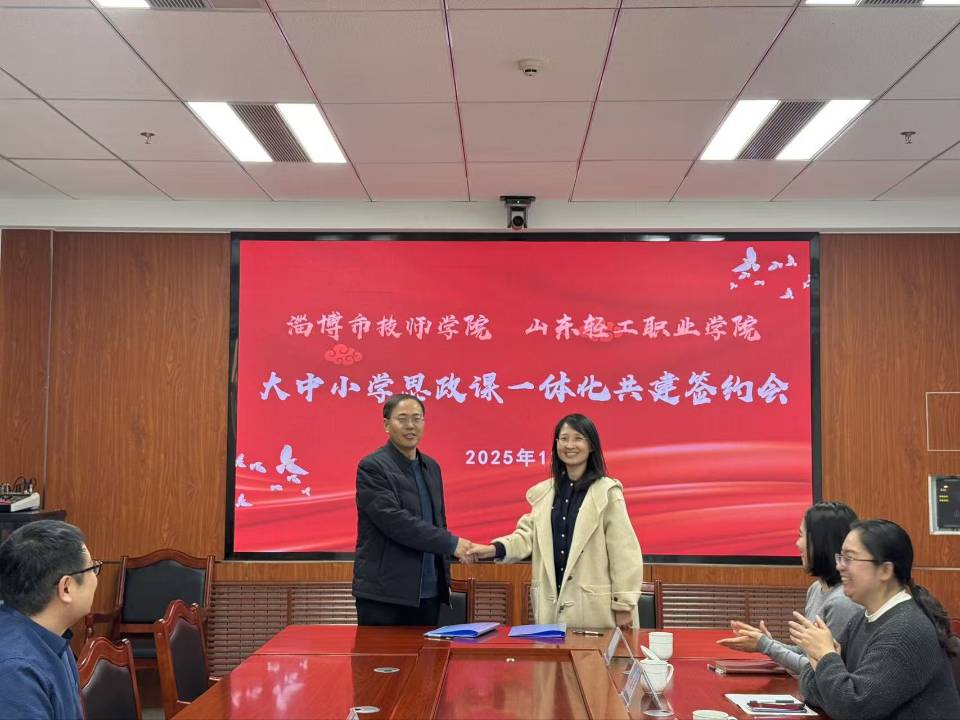 12月24日下午,学校马克思主义学院党总支书记贾万刚带队赴淄博技师学院思想政治教育部交流学习,双方召开座谈会并签署合作备忘录,淄博市技师学院思想政治教育部党支部书记、主任王宁出席会议。